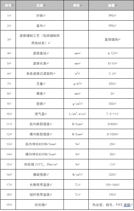First of all, let's understand the performance parameters of dust bag, mainly including: bag diameter, length, single bag area, grammage, thickness, air permeability, etc.. See the following table for details